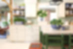 What did we do you ask? Let me tell you. We took the existing range hood (my husband had constructed 3 years prior), painted it green, and added a scallop detail, plus trim. The counter top was replaced with butcher block that we gave a whitewashed stain, we installed a farmhouse sink and built a new sink cabinet with lattice detail. We also added one other cabinet base to replace the lost space from the small hutch we removed. The existing island was rotated, shelving added and painted. The light above was also rotated, and a few more recessed lights installed. We also wallpapered and added 2 more wood shelves on the wall. The most dramatic change would have to be the floors. We sanded and painted all the floors a creamy white. This might be my most bravest and rewarding design decision ever. I seriously love how the floors turned out.